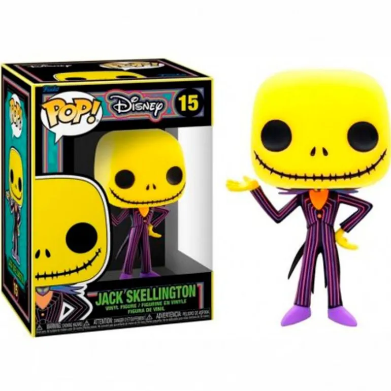 Figura fabricada en vinilo de la colección Funko POP! con número 15, inspirada en el personaje de Jack, de la película de animación Pesadilla Antes de Navidad. Dispone de característica Black Light. Su tamaño es de 10 cm aproximadamente. Recomendado a partir de 3 años.