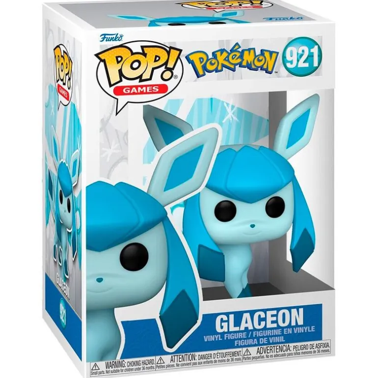 Figura fabricada en vinilo de la colección Funko POP con número 921, inspirada en Glaceon, del videojuego Pokémon. Su tamaño es de 9 cm aproximadamente. Recomendado a partir de 3 años.