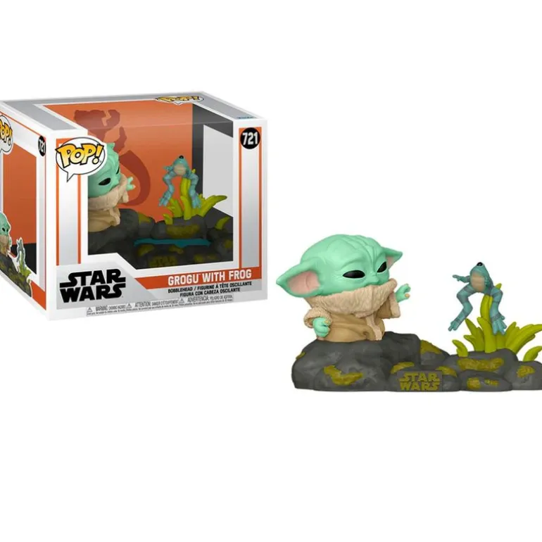 Figura fabricada en vinilo de la colección Funko POP con número 721, inspirada en Grogu con una rana, de la famosa serie de Disney + ‘The Mandalorian’ basada en el universo Star Wars.