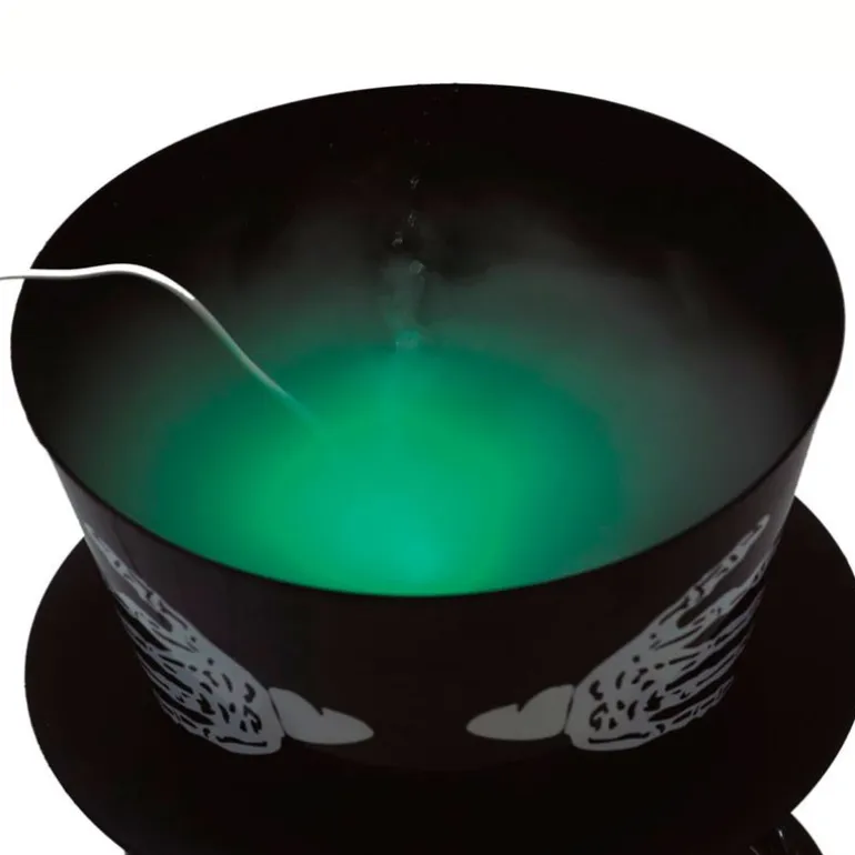 Máquina de humo que reproduce luces LED para que puedas ambientar de la manera más terrorífica tu fiesta de Halloween. NO incluye caldero.