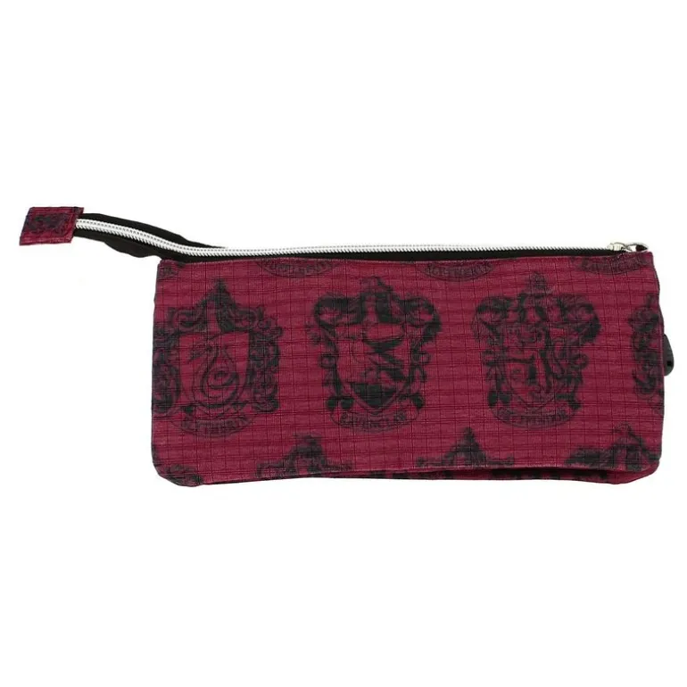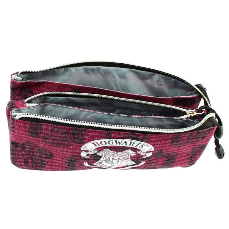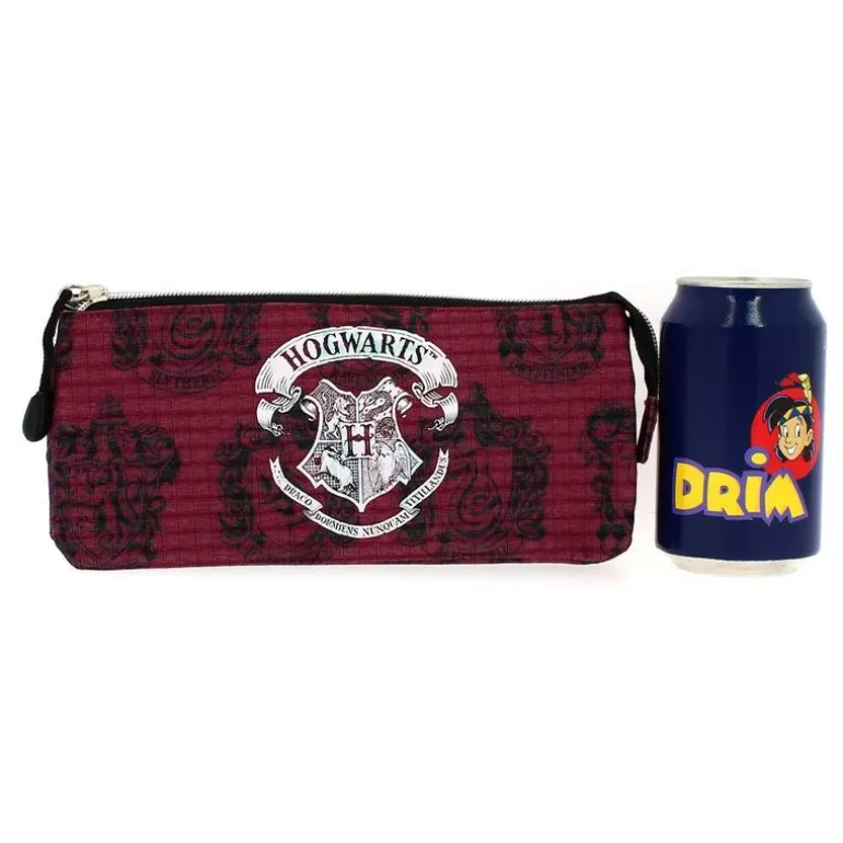 ¡¡Un portatodo ideal para auténticos aprendices de mago!! El plumier, en color borgoña, lleva el impreso el escudo de Hogwarts en color blanco. Cuenta con 3 departamentos independientes con cierre de cremallera en los que podrás guardar y almacenar tu material de escritura de clase. Dimensiones aproximadas del portatodo: 12 x 22 x 7 cm.