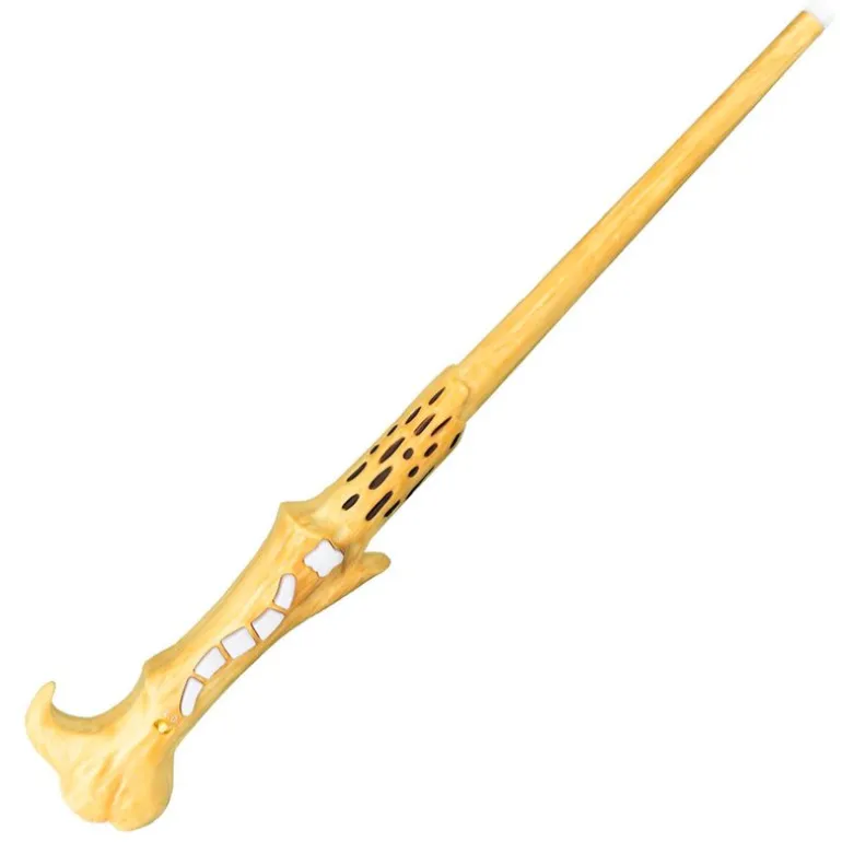 Réplica con todo lujo de detalles de la varita mágica de tejo, que pertenece ‘al que no debe ser nombrado’ también conocido como Lord Voldemort ¡Una oscura fuerza se encuentra en su interior! Practica para dominar las fuerzas oscuras y unirte a los mortífagos. Tu varita mágica dispone de 5 modos de juego diferentes y 11 hechizos que podrás aprender. Sus efectos te sorprenderán, permitiéndote recrear las batallas de magia más épicas. Funciona con 3 pilas AAA incluidas (pilas de demostración). Recomendado a partir de 8 años.