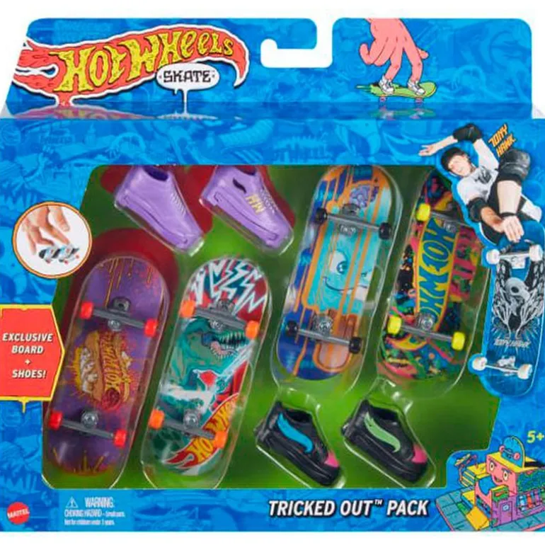 Pack de la colección Hot Wheels Skate en el que encontrarás 4 monopatines de dedos acompañados de 2 pares de zapatillas. Recomendado a partir de 5 años. EXISTEN MODELOS DIFERENTES. SE VENDEN POR SEPARADO. SE SURTIRÁN SEGÚN EXISTENCIAS. AL REALIZAR LA COMPRA, PUEDES RECIBIR CUALQUIER MODELO SURTIDO AL AZAR, INCLUIDOS MODELOS QUE NO SE ENCUENTREN EN LAS FOTOS. PRECIO POR UNIDAD.