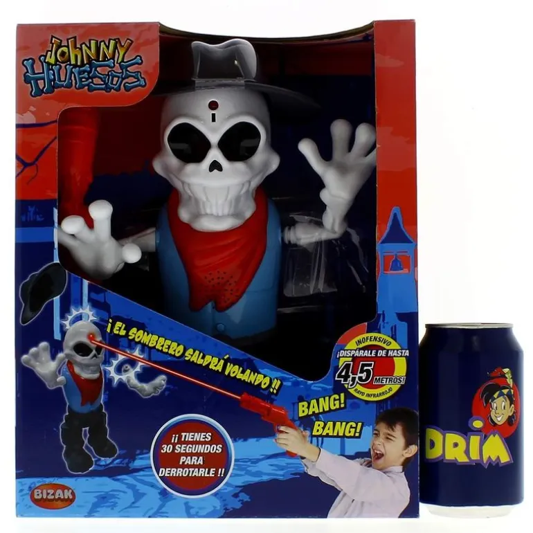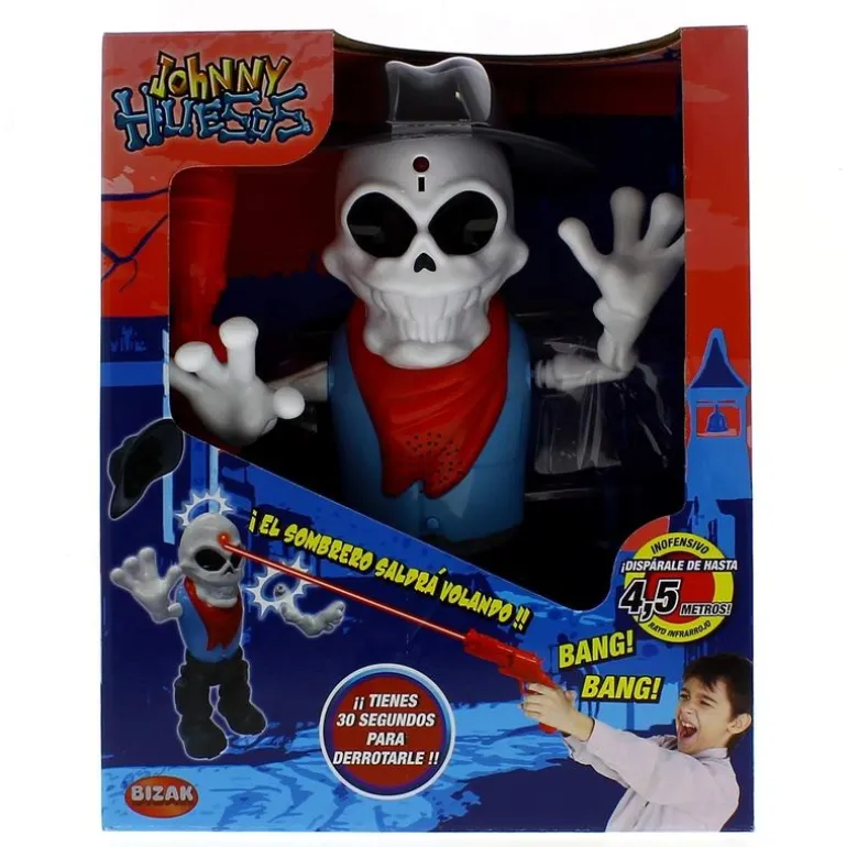 Nuevo juego Johnny Huesos. Un divertido juego en el que deberás disparar con la pistola infrarojos en la frente de Johnny para derrotarle. Además, tienes que darle nueve veces mientras él se va acercando para atacarte… solo tienes 30 segundos para intentarlo. Si le disparas en el sombrero o en el brazo se caerán y si finalmente lo derrotas se desmayará.