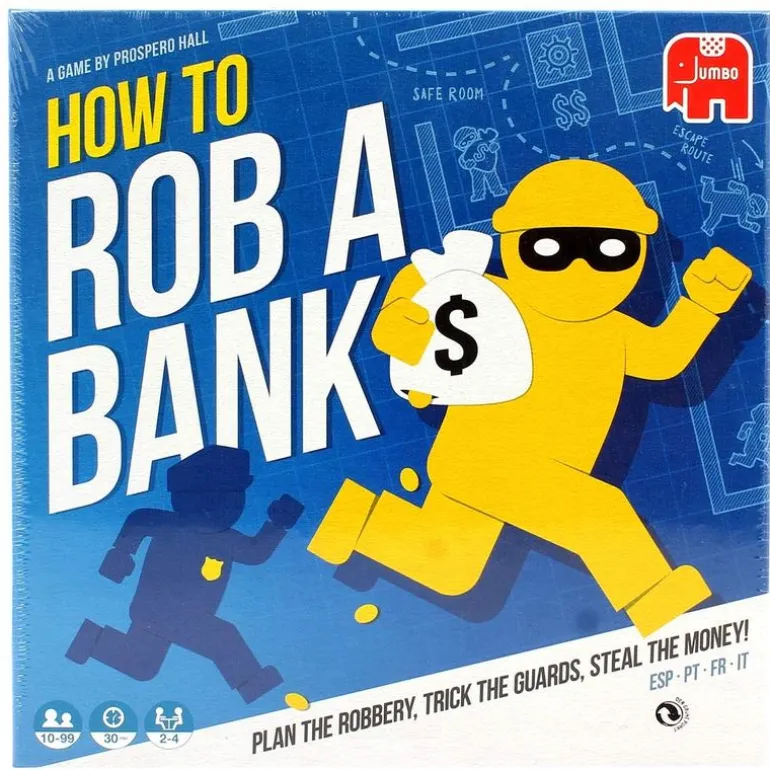 En este trepidante juego de mesa tendrás que unir fuerzas con los demás jugadores para acabar con los guardias del banco y conseguir el botín. El mapa de juego con 3 niveles cambiará en cada partida, los ladrones tendrán que ser hábiles para planear el robo y salirse con la suya. Tendréis que ser cuidadosos, ya que los guardias esconden trucos en la manga con los que podrán atraparlos y evitar el robo del banco.