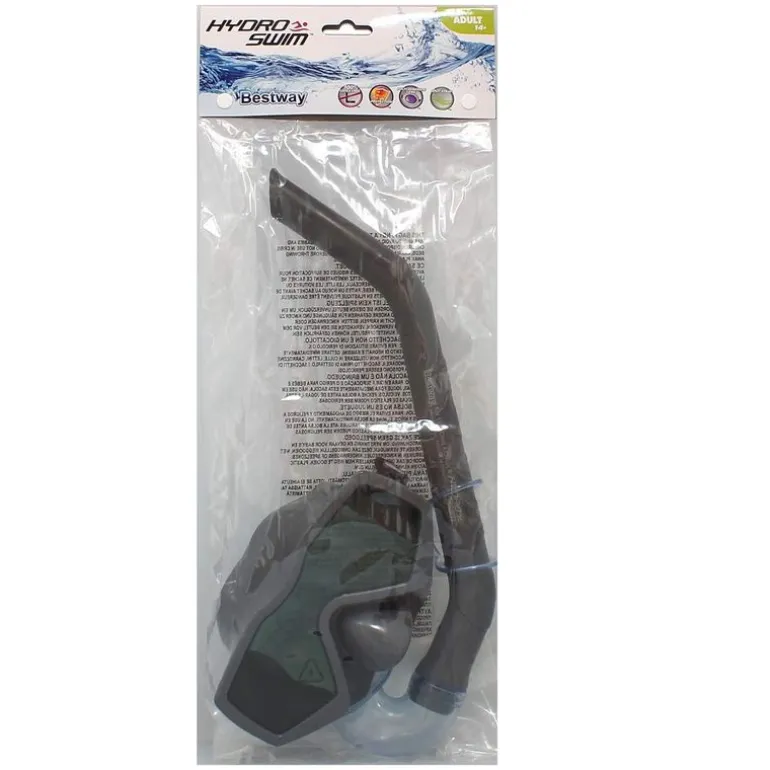 Kit de buceo que se compone de gafas y un tubo. Las gafas son de estilo aviador y disponen de policarbonato con revestimiento de protección UV. También tienen doble borde para evitar filtraciones.