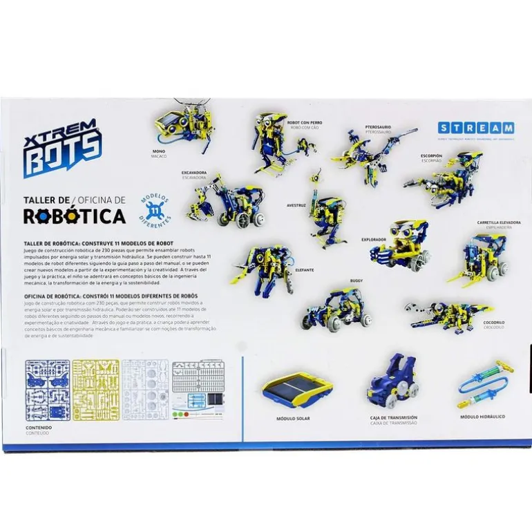 Kit para descubrir los principios básicos de la robótica, podrás construir hasta 11 modelos de robots, con función por energía solar y con transmisión hidráulica. Un robot que utiliza energía verde para desplazarse, sin necesidad de pilas y con una gran cantidad de información robótica que se aprende jugando. ¡Crea modelos con tu imaginación y la gran cantidad de piezas incluidas!