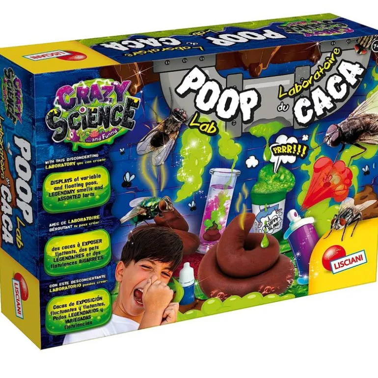 Pack con el que podrás explorar el apasionante mundo de la caca. Podrás crear aromas malolientes, caca crujiente, aprender sobre el sistema digestivo, formas y colores de la caca, generador de pedetes y experiencias de flotación. En el interior encontrarás líquido maloliente, un molde de caca, barro esponjoso, pigmentos líquidos, guantes de protección, base de experimentación, tubos de ensayo y un manual ilustrado.