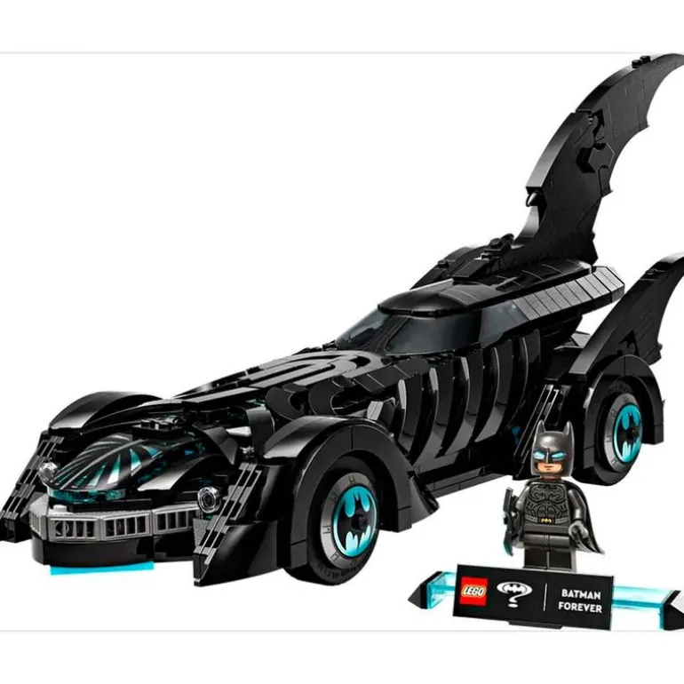 Cuenta con parabrisas moldeado, ruedas móviles, elementos decorativos y habitáculo que se abre para dejar a la vista un detallado interior. El vehículo viene acompañado de una minifigura de Batman con su propia base especial.