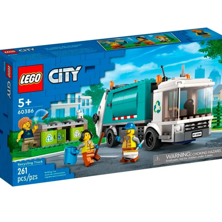 Pack de la colección Lego City, compuesto de 261 piezas, con las que podrás construir el camión de reciclaje. Podrás construir además del camión, un punto limpio con 3 contenedores, 3 mini figuras y una figura de gato. El camión dispone de plataforma basculante para vaciar los contenedores y elevar la tolva para descargar el contenido. Sus dimensiones son de 8 cm de alto x 21 cm de largo x 6 cm de ancho aproximadamente. Recomendado a partir de 5 años.