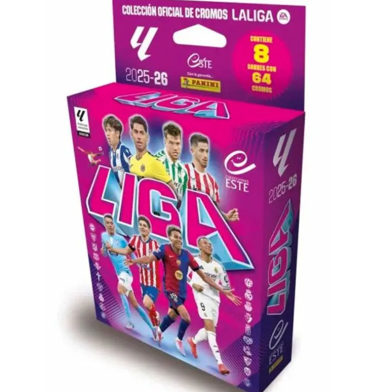 Pack en el que encontrarás 8 sobres sorpresa de la colección Liga Este 2025-2026.