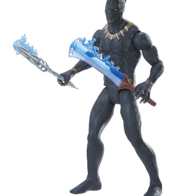 Figura inspirada en el personaje de Black Panther. Su tamaño es de 15 cm aproximadamente y su cuerpo dispone de articulaciones. Viene acompañado de accesorios. Recomendado a partir de 4 años.