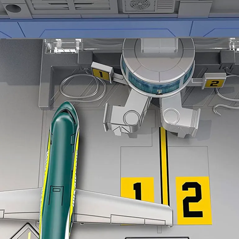 Playset aeropuerto de la colección Matchbox Action Drivers ¡Repleto de funciones para que puedas activar tanto el coche como el avión! Dispone de un carrusel de equipaje móvil, la pasarela de acceso y viene acompañado de un coche y un avión de la colección Matchbox de escala 1:64. Reproduce luces y sonidos. Funciona con 3 pilas LR44 incluidas (pilas de demostración). Recomendado a partir de 3 años.