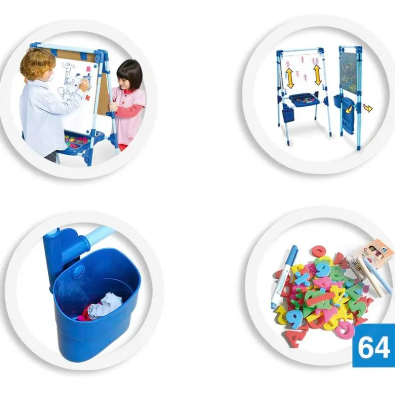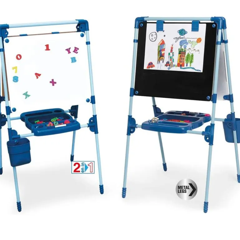 Pizarra comby magnética para los más pequeños de la casa. Por un lado podrás dibujar con tiza y por el otro utilizar la parte magnética y el rotulador mágico. Contiene una caja con tizas y un rotulador. Dispone de contenedor guarda-objetos para guardar todos los accesorios. La pizarra es extensible y plegable. Sus dimensiones son de 120 cm de alto x 62.5 cm de ancho x 60 cm de profundidad aproximadamente. Recomendado a partir de 3 años.