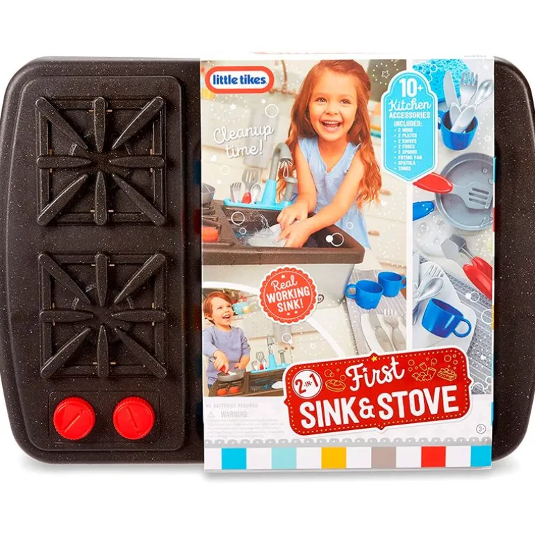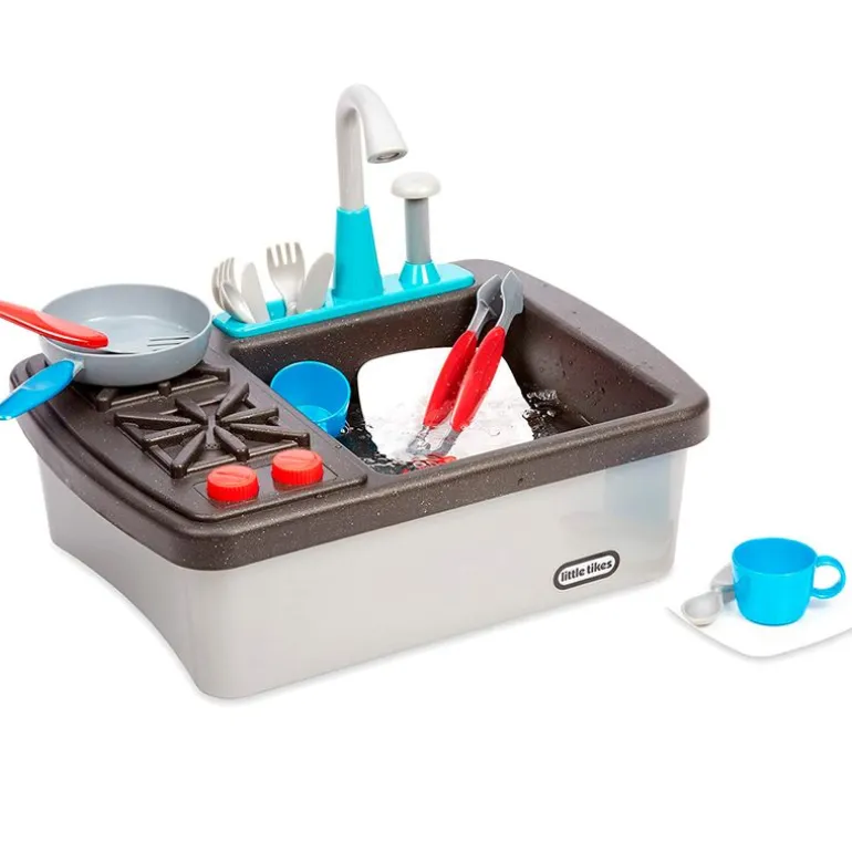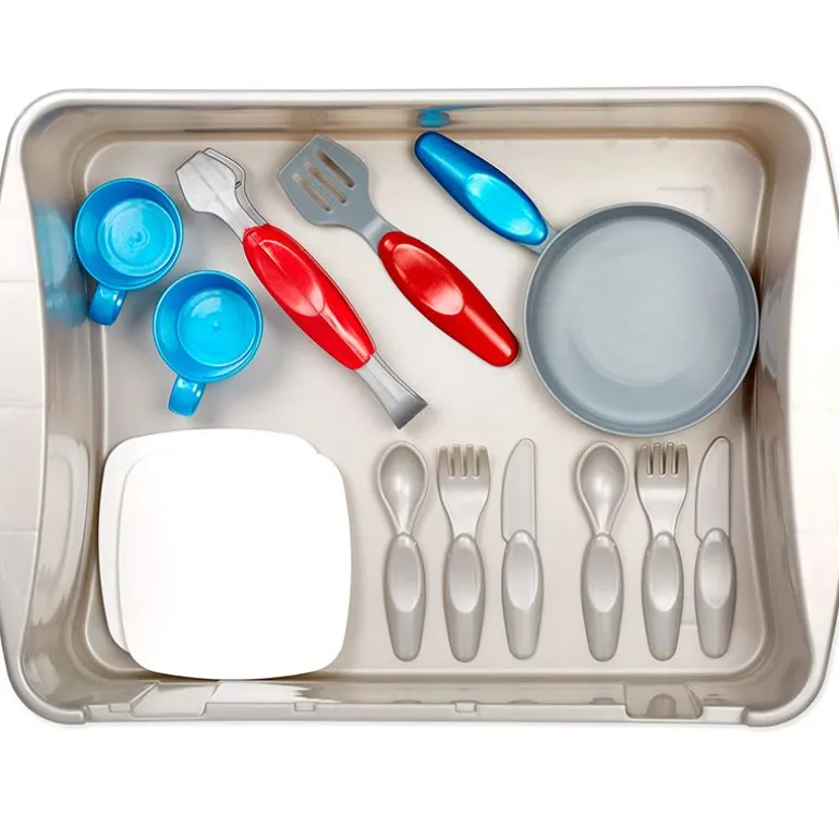 Divertido fregadero y estufa para los más pequeños de la casa con divertidas funciones interactivas. El fregadero funciona de verdad, al presionar la bomba de agua incorporada, fluye a través del grifo. Al girar las perillas de las estufas, reproduce sonidos realistas. Ideal para que los más pequeños de la casa adquieran sentido de la responsabilidad, una parte importante del aprendizaje socioemocional. Contiene 13 accesorios que podrás guardar en el interior del fregadero. Recomendado a partir de 3 años.