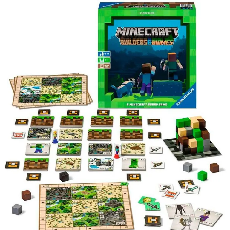 ¡Prepárate para una emocionante aventura en el universo Minecraft! Recoge los bloques y construye edificios alucinantes ¡Pero ten cuidado! Hay monstruos muy fuertes y tus adversarios también tratarán de complicarte las cosas ¡Solo el más hábil y valiente podrá ganar! En el interior encontrarás todos los accesorios necesarios para comenzar a jugar. Contiene 64 bloques-tronco, 64 cartas-edificio y cartas-monstruo, 34 fichas-arma, 4 tableros-jugador, 4 marcadores-experiencia, 4 skins, 4 pedestales, 12 cartas de resumen, una base para bloques y un soporte de construcción. Duración del juego de 30 a 60 minutos. De 2 a 4 jugadores. Recomendado a partir de 10 años.
