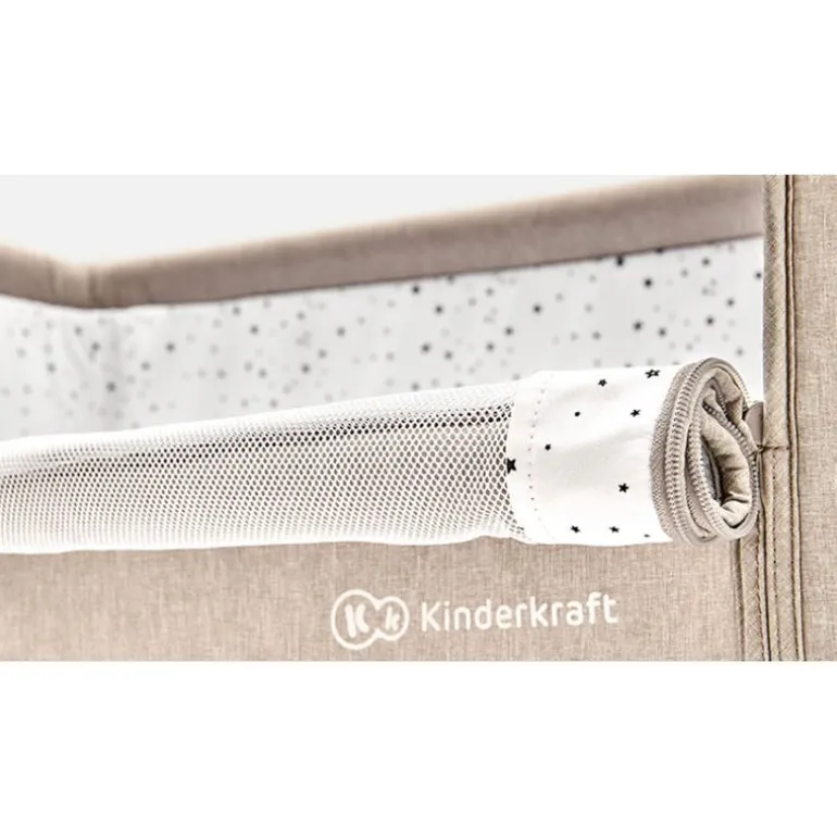 La pared lateral se puede enrollar fácilmente. El lateral después de cerrar tiene una malla por la que se puede observar el niño.