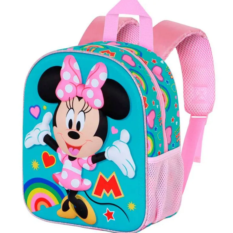 Mochila preescolar con diseños 3D inspirados en la ratoncita Minnie Mouse.