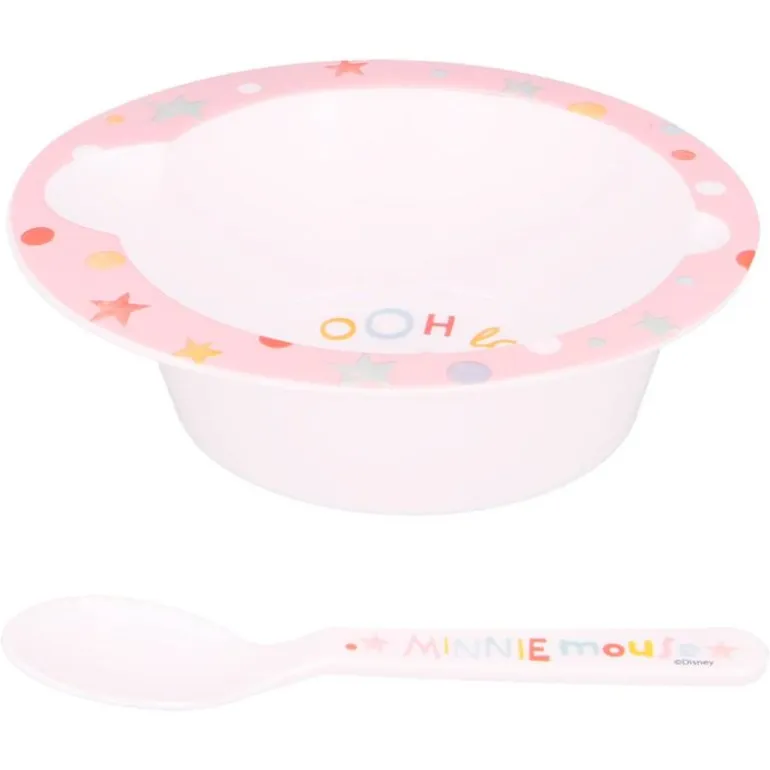 Pack con diseños inspirados en el personaje de Minnie Mouse en el que encontrarás un práctico bowl y una cuchara a juego. Ambos son aptos para microondas y están libres de BPA.