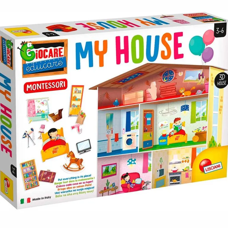 Monta una casa 3D inspirada por el método Montessori. En el interior encontrarás los diferentes accesorios con los que poder decorarla. Ideal para la memoria táctil, concentración, autonomía, motricidad fina y coordinación mano-ojo. Recomendado a partir de 3 años.
