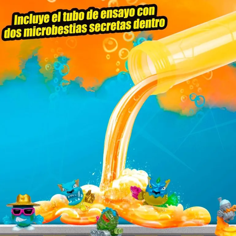 Agrega agua al tubo de ensayo, agítalo y revela 5 personajes coleccionables de Mr. Beast.