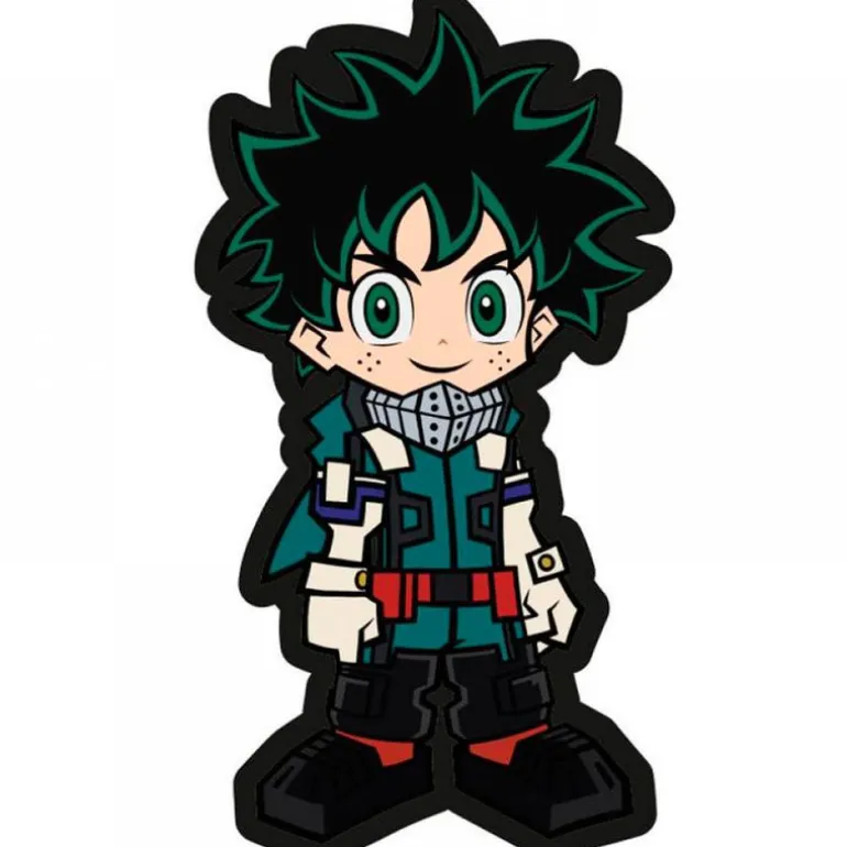 Cojín 3D con el diseño de Deku, personaje protagonista de la famosa serie de anime My Hero Academia. Su tamaño es de 35 cm aproximadamente.