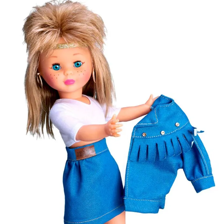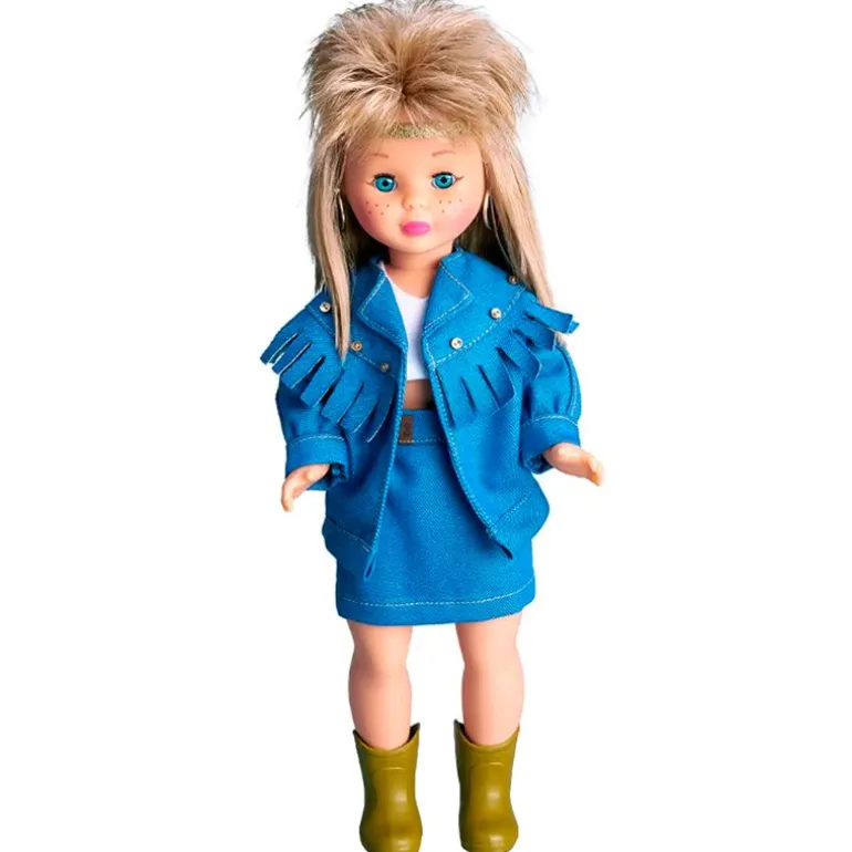 Reedición de la famosa muñeca Nancy Jeans del año 1989. Es de las pocas muñecas de los años 80 que se han reeditado. Lleva su característico pelo punk, identificativo de la época. Luce un look denim y chaqueta oversize. Viene acompañada de certificado de autenticidad. Recomendado a partir de 6 años.