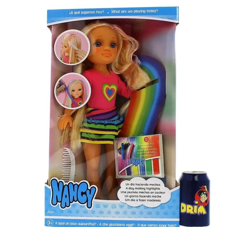 ¿A qué jugamos hoy? ¡Vamos a divertirnos haciendo mechas de colores a Nancy! En esta ocasión, Nancy tiene el pelo más largo que nunca para que la puedas peinar y decorar, y hacerle mechas con efecto arcoíris. Las tizas de colores también pueden ser usadas por la niña en su propio pelo.