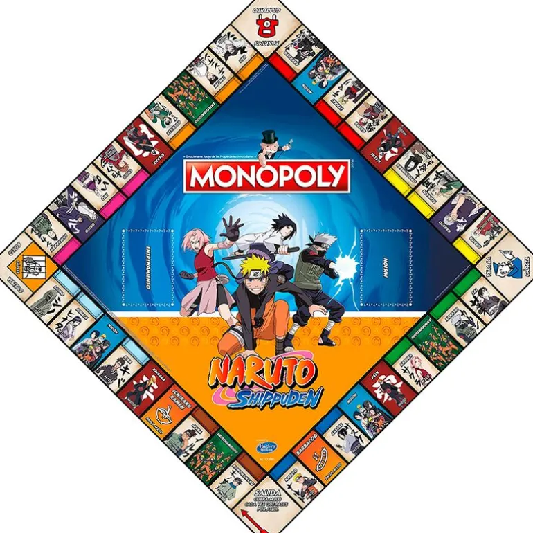 Clásico juego de Monopoly con temática inspirada en la famosa serie de anime Naruto Shippuden ¡Podrás convertirte en el shinobi más poderoso! Reúne a tus ninja favoritos, coge las cartas de entrenamiento y misión y desarrolla las técnicas ninja para evitar la bancarrota. De 2 a 6 jugadores. Recomendado a partir de 8 años.