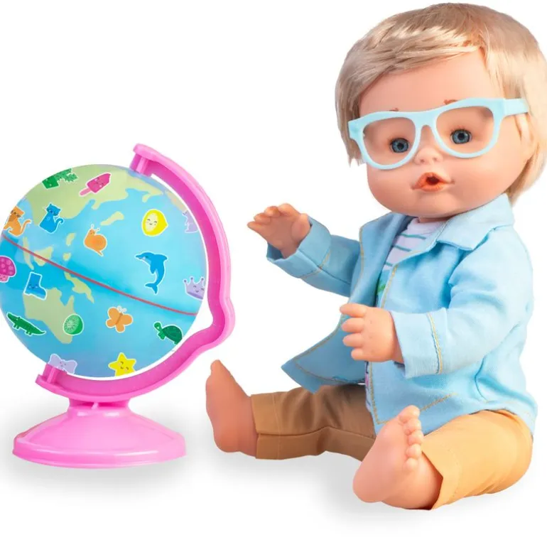 Al girar la bola del mundo y seleccionar un dibujo, tu muñeco Nenuco te hará preguntas para intentar adivinar el objeto o el lugar.