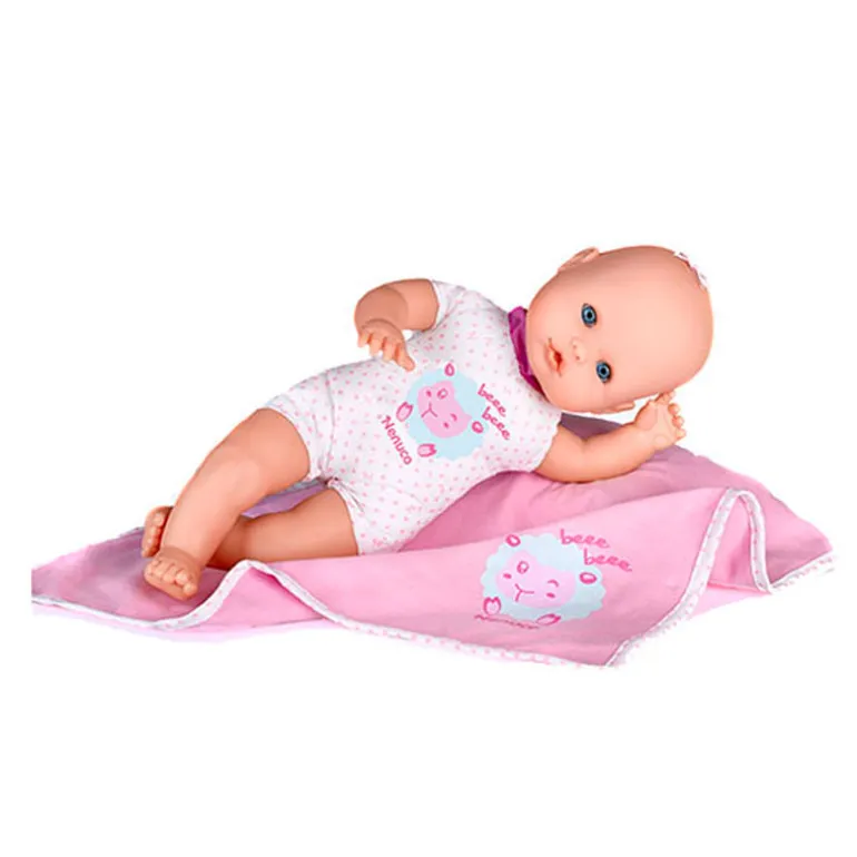 Este precioso y dulce recién nacido Nenuco, con sonidos de bebé, trae una suave mantita para que lo arropes ¡¡es muy friolero!! El muñeco es de cuerpo blando y tiene ojos durmientes.