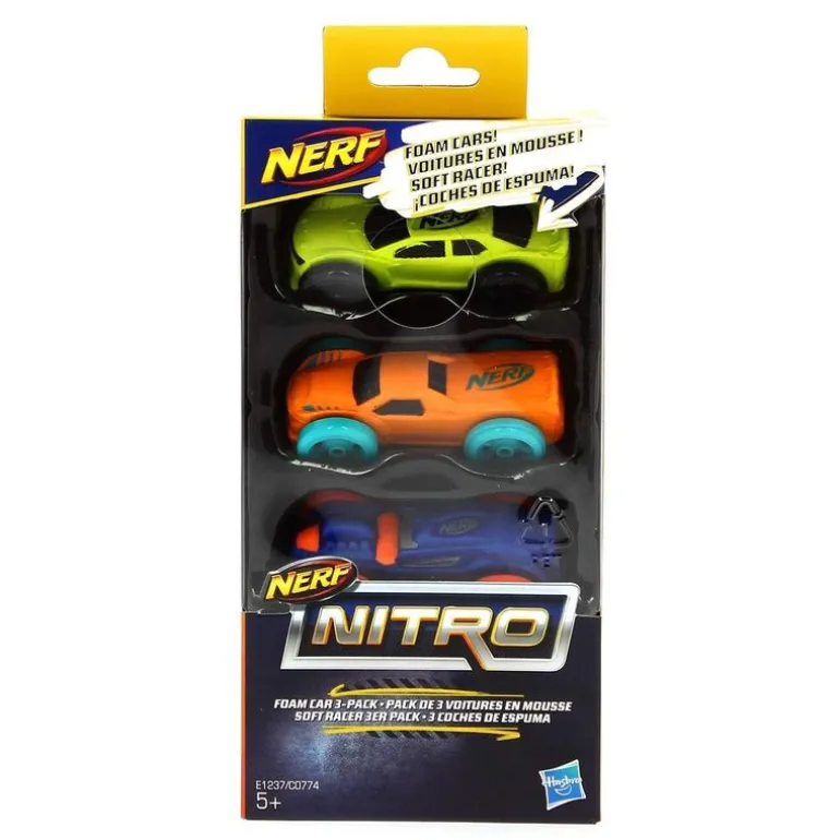 Este pack incluye 3 coches de espuma para usar con las pistolas Nerf Nitro de Hasbro.