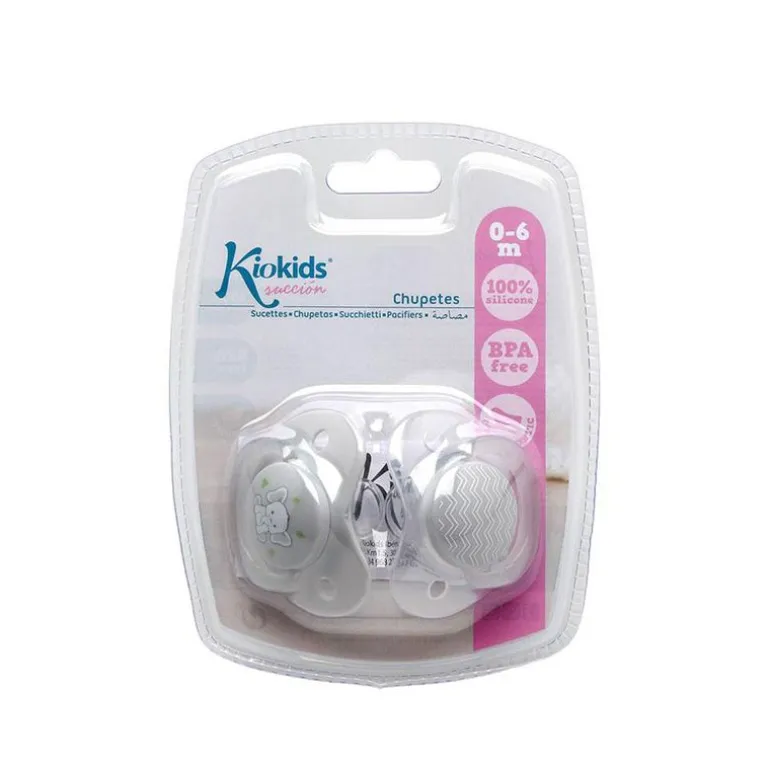 Pack de 2 chupetes con tetina de silicona de 0 a 6 meses, ideal para calmar a tu bebé.