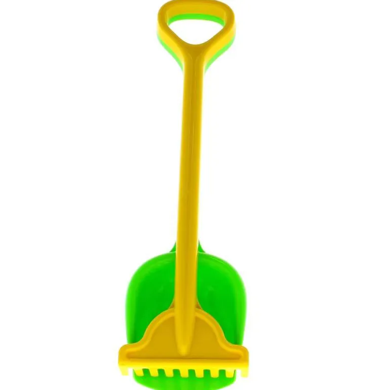 Un conjunto perfecto para ir este verano a la playa o al parque, compuesto por una gran pala y un gran rastrillo para jugar en la arena. Ambos útiles son de plástico resistente y miden, aproximadamente, 56 cm de largo.