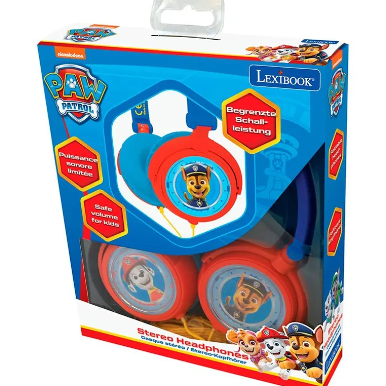 Auriculares plegables con diseños inspirados en tus cachorros favoritos de la serie de animación Patrulla Canina. Estos auriculares estéreo son compatibles con todos los lectores de audio y vídeo que tengan entrada para jack. La potencia del casco está limitada a un máximo de 85 d8 para proteger la capacidad auditiva. Las almohadillas permiten cubrir la oreja de manera suave, sin presionar el lóbulo y le aíslan del ruido de ambiente para que no tengan que subir el volumen.