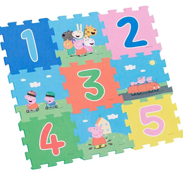 Puzzle de foam con diseños inspirados en la serie de animación Peppa Pig.