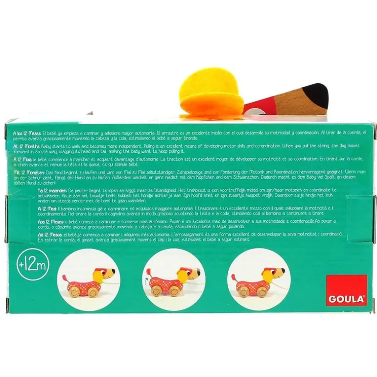Adorable perrito con un colorido diseño y fabricado en madera que se convertirá en el nuevo compañero de tu pequeñ@. Podrá pasearlo y llevarlo a todas partes gracias a sus ruedas y su correa de arrastre. Mueve su cabeza y rabito, ayudará a tu bebé con el desarrollo de sus habilidades motrices y a descubrir la relación causa-efecto. Recomendado a partir de 12 meses.