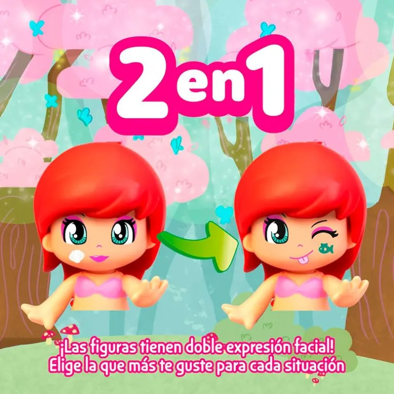 La figura de la sirena incluye una cola de quita y pon con mucha purpurina.