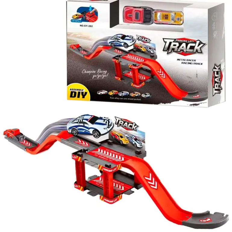 Pack con el que podràs muntar tu pròpia pista de carreres, con rampes de doble nivel y curvas pronunciades que los vehículos salgan disparados a gran velocidad.