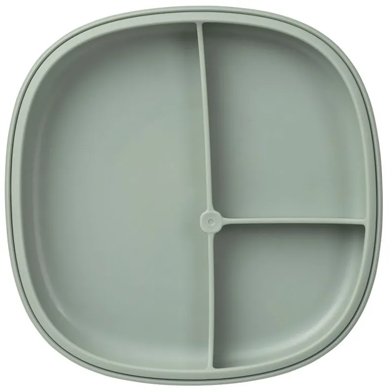 Plato antideslizante con base y compartimentos ergonómicos de silicona suave e irrompible para que aprender a comer sea más fácil y cómodo.