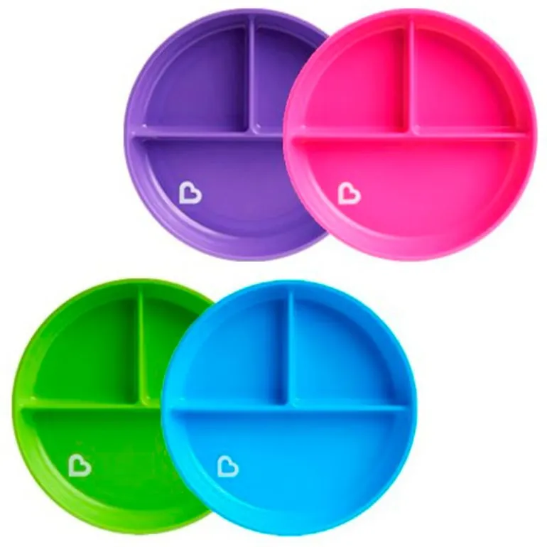 Plato antideslizante con base y compartimentos para poder poner los alimentos separados.