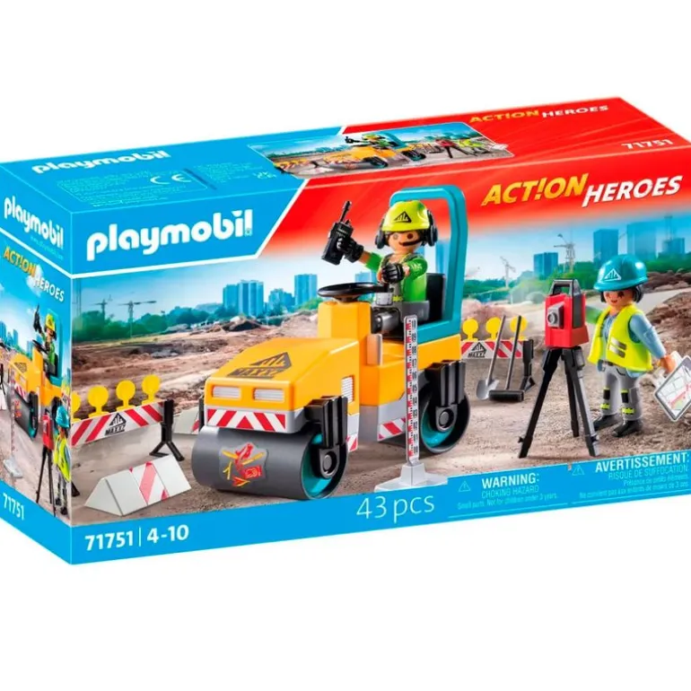 Contiene 2 figuras de hombres con cascos de construcción y muchos accesorios.