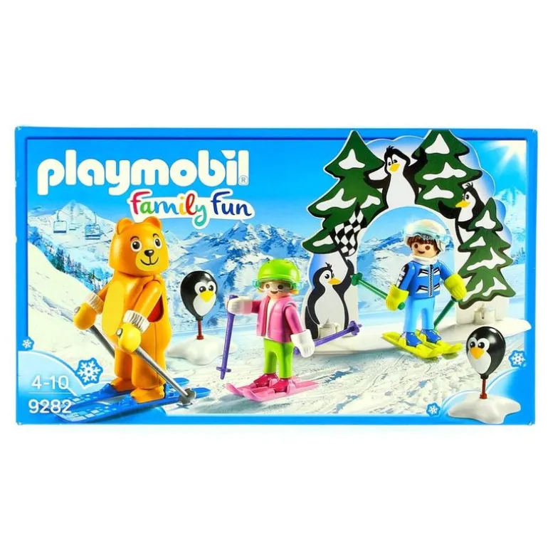 Escuela de esquí de Playmobil. ¡En esta escuela tus figuras se convertirán en unas profesionales del deporte! Con el arco que incluye y los globos podrán realizar ejercicios de slalom para practicar. Incluye tres figuras Playmobil, entre las que se encuentra el instructor y que puede llevar un disfraz de oso extraíble. También encontrarás en el interior todos los accesorios para realizar el deporte como esquís, cascos, guantes… Recomendado a partir de 4 años.