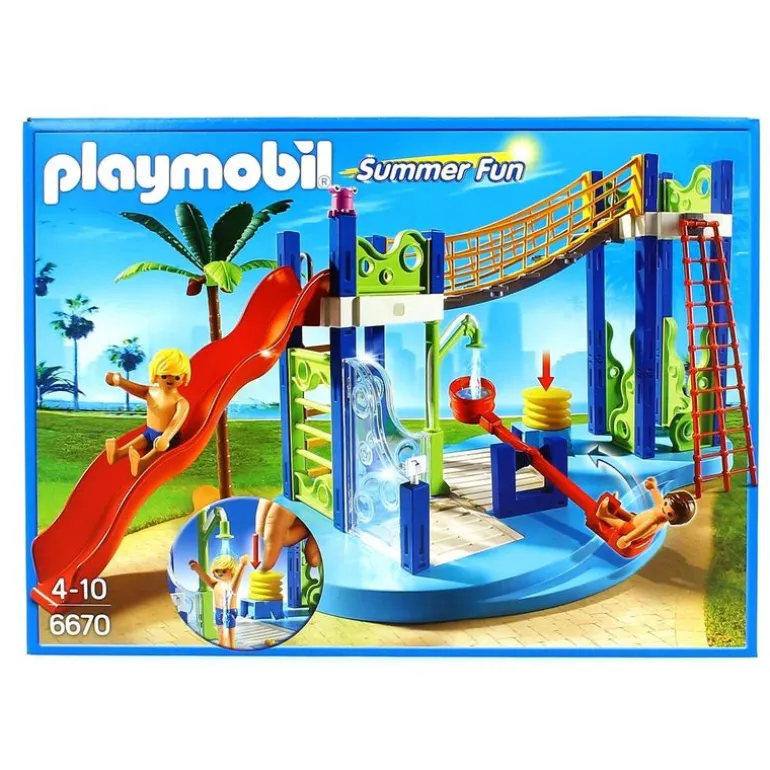 Zona de juegos acuàtica con tobogán y ducha que tira agua de verdad. Dispone de balancín acuático para diversión de los usuarios. Combínalo con el Parque Acuático con Toboganes.