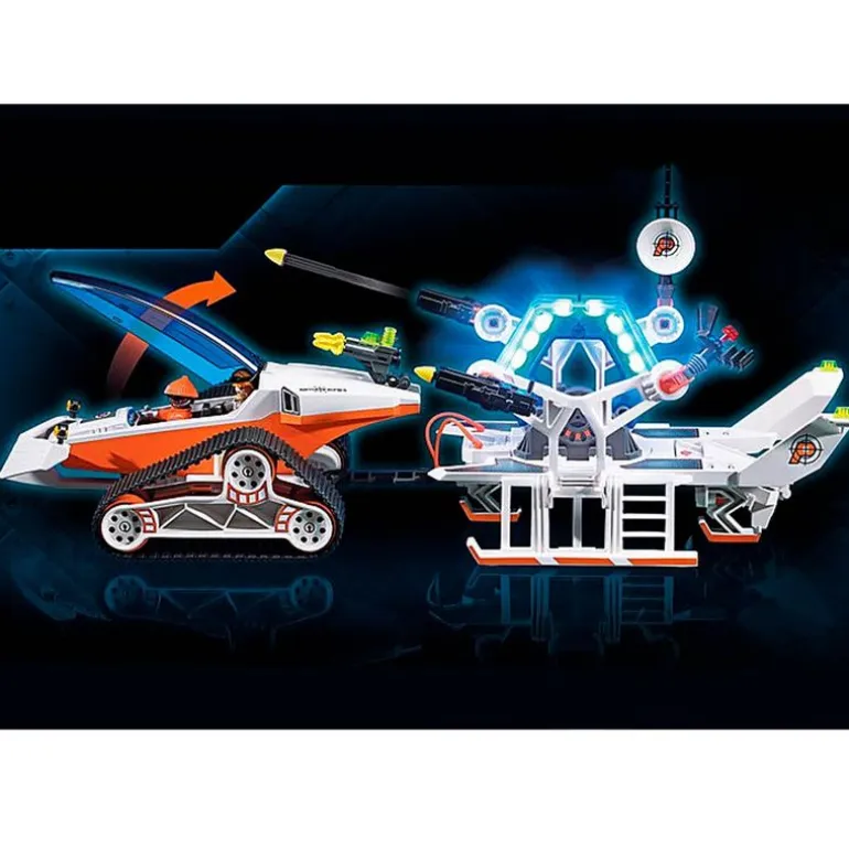 Incluye 2 figuras de la colección Playmobil y muchos accesorios, como una moto de nieve, armas y proyectiles.