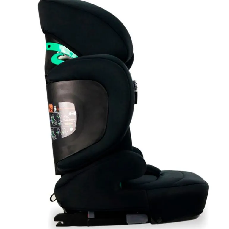 Se instala mediante el isofix y el cinturón de 3 puntos del coche, con una guía superior para un correcto pase del cinturón y un protector para evitar rozaduras.