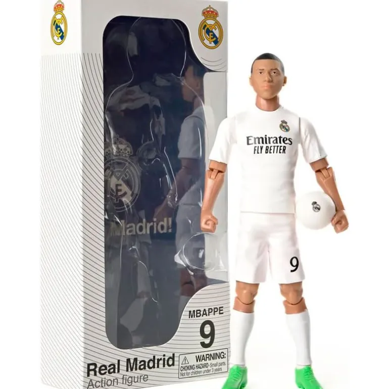 Figura articulada de 20 cm aproximadamente inspirada en el jugador de fútbol Kylian Mbappe del equipo Real Madrid FC.