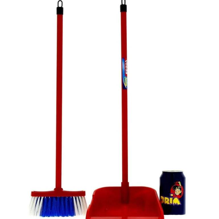 Imita a tus papis y ayúdales a dejar la casa bien limpia con este set Vileda que incluye 1 escoba y 1 recogedor de juguete.