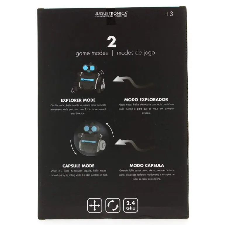 Incluye 1 ROLLIE, 1 emisora de control, Pegatinas, Ruedas, 1 cápsula y Manual de instrucciones.