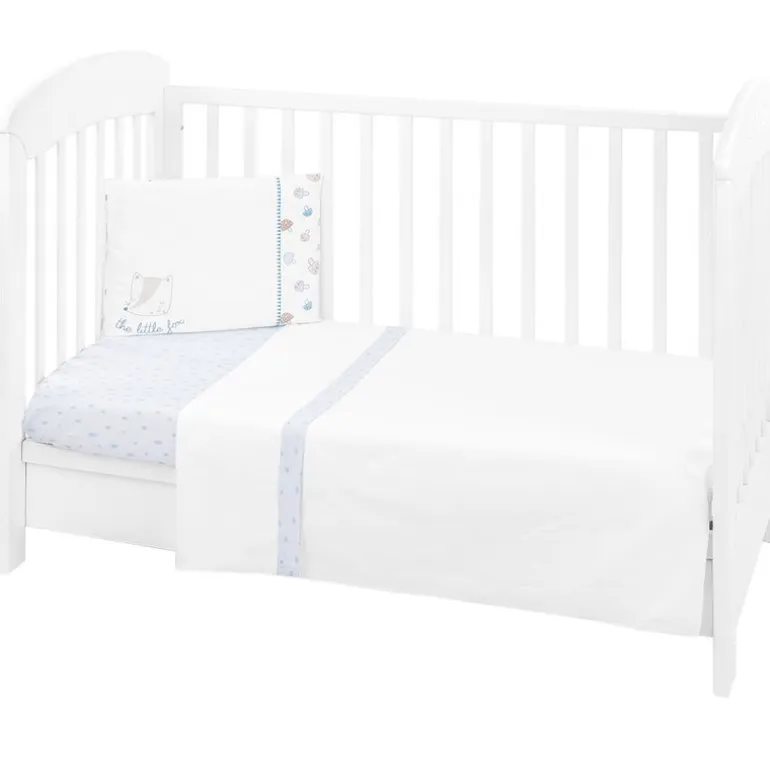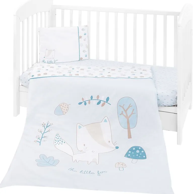 Este set de sábanas está compuesto por una almohada, funda de almohada, funda nórdica, relleno, bajera ajustable y protector de cuna (chichonera).